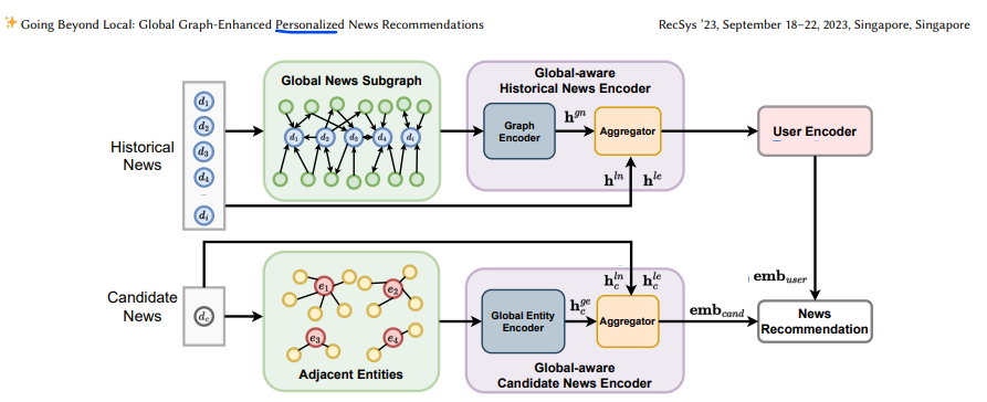 - global-aware historical news encoder uses global news graph to provide global perspectives for historical news)