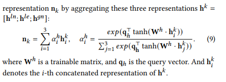 - Candidate News Aggregator 에서 (9)번 식 (h 𝑐 = [h 𝑙𝑛 𝑐 ; h 𝑙𝑒 𝑐 ; h 𝑔𝑒 𝑐 ])을 활요하여 emb_cand를 얻음